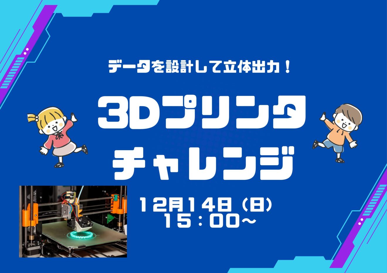 小学生・中学生を対象に、自分だけのアイテムを3Dプリンタでつくる創作イベントです。